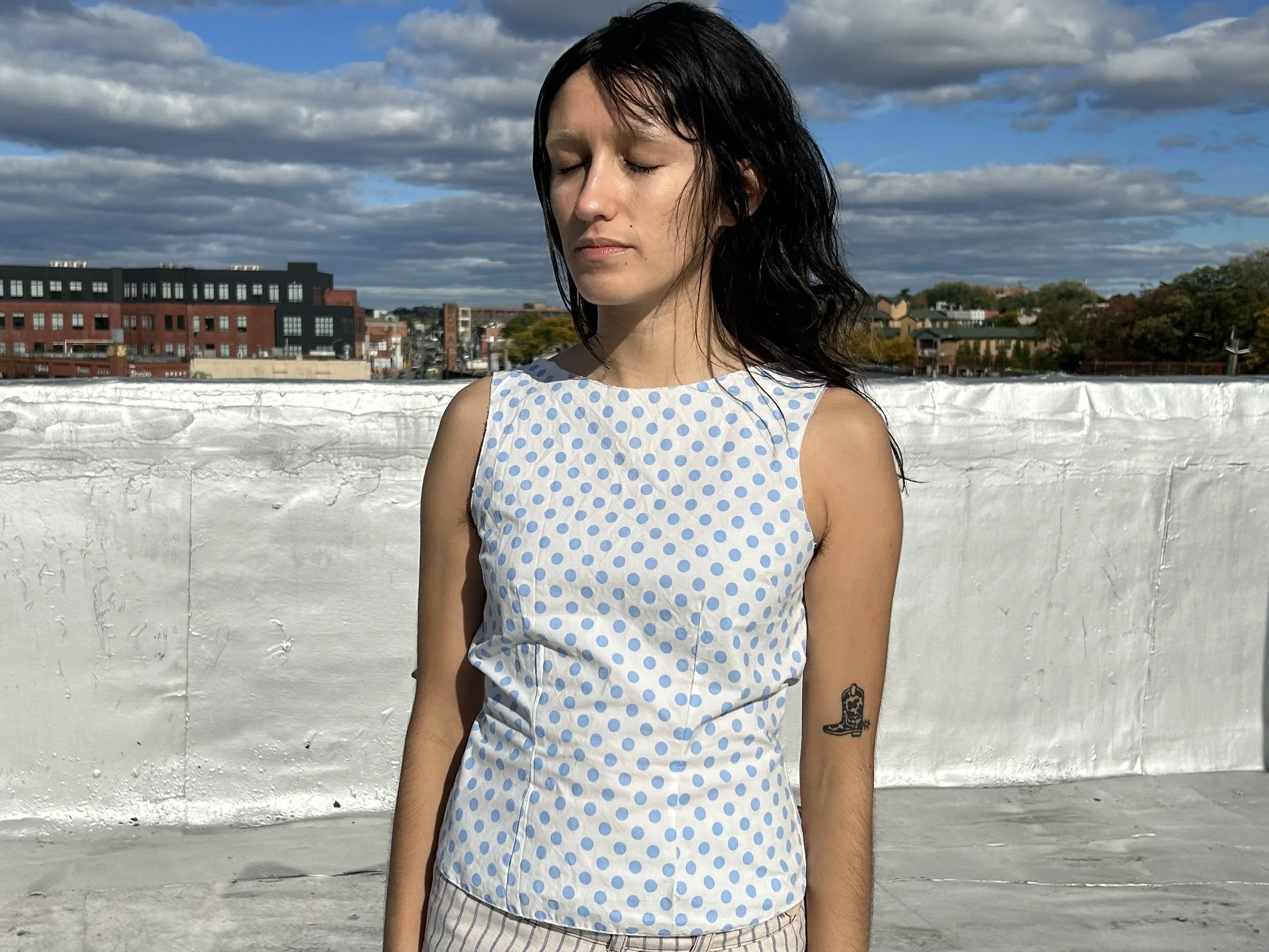Handmade was established by Gabrielle Johnson in 2018. Crafted from upcycled fabric remnants generously donated by fabric stores, these handmade garments are improvisational and one of a kind.